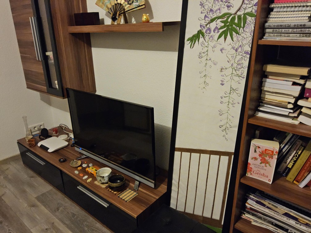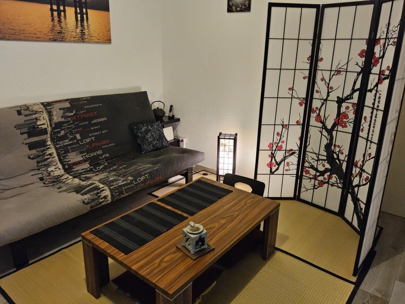 Meine Wohnung ist eingerichtet mit japanischen Futon- und Wandschirmen etc. Diese Wohnung ist ideal für Japanliebhaber. Falls jemand Interesse hat, Japanisch zu lernen, erlaube ich dieser Person gerne, meine zahlreichen Lernbücher frei zu benutzen.