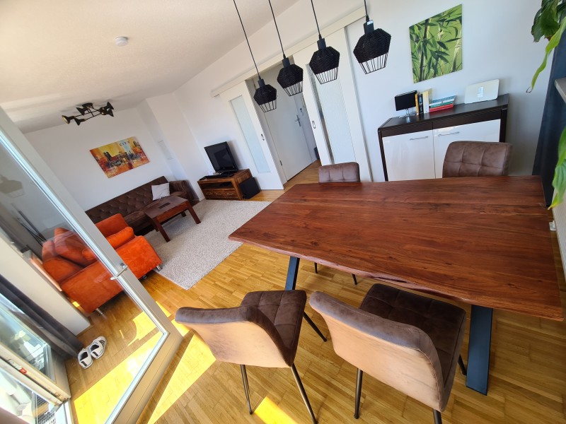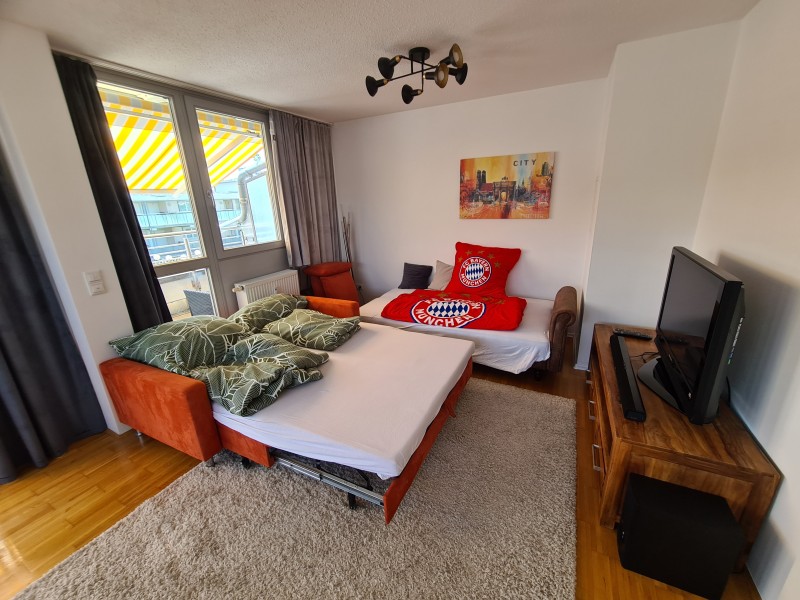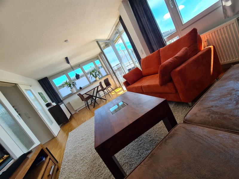 2 Zi Wohnung inkl. Tiefgarage, 2 Dachterrassen (Süden und Norden), Einbauküche, voll möbliert: TV (Kabelempfang), WLAN (Telekom Glasfaser)