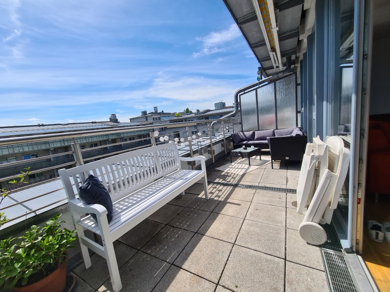Möbliert auf Zeit: Dachterrassenwohnung Theresienwiese, TG, sonnig und hell