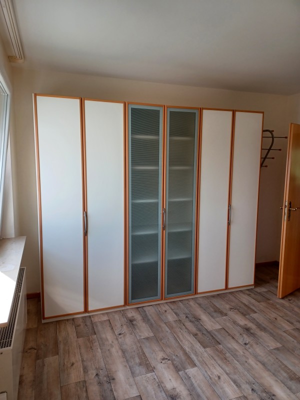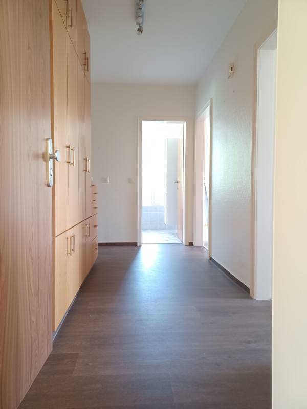 Die Wohnung ist bereits mit einer EBK ausgestattet und kann mit einigen bereits vorhandenen Möbeln gemietet werden (inkl. Flur/ Küchen und Schlafzimmerschrank, Esstisch + Stühle). Das Wohnzimmer und die Küche sind bereits mit einem neuwertigen Fußbodenbelag im Holzoptik ausgestattet.