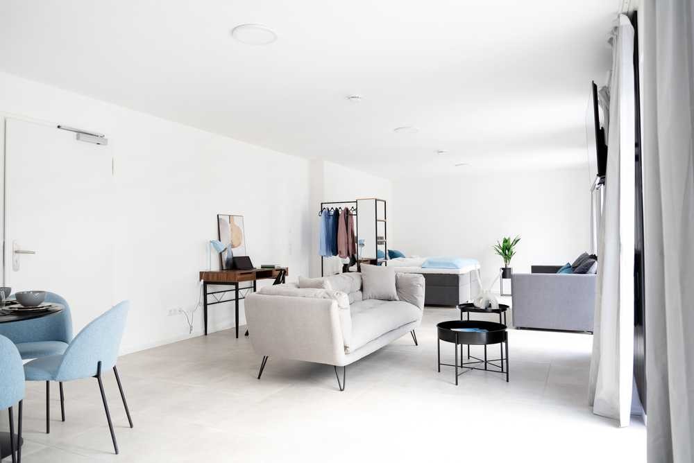 Das Apartment ist 54 m² groß und kann durch einen großen Kleiderschrank in zwei Räume geteilt werden.
