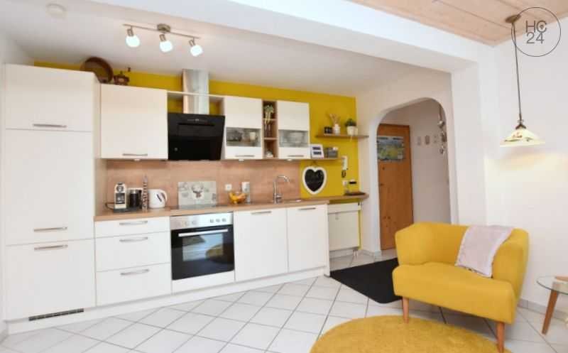 Diese ruhige 2 Zimmer Erdgeschosswohnung mit 53 qm und Terrasse liegt in der Nähe des Forggensees. Der offen gestaltete Koch-, Ess-, Wohnbereich verfügt über eine vollständig ausgestattete Einbauküche inkl. Spülmaschine - einen Esstisch mit Eckbank, ein 2-sitzer Sofa, ein Sessel, ein Couchtisch, eine Kommode und ein Flat-TV. Im Schlafzimmer gibt es ein Doppelbett (1,80 x 2,00m) und einen 2-türigen Kleiderschrank. Das Tageslichtbad ist mit einer Duschwanne, einem Waschbecken und ein WC eingerichtet. Vom Wohn- und Schlafzimmer geht es auf die nach Südosten ausgerichtete Terrasse mit Garten. Die Wohnung wird über eine moderne Pellets-Zentralheizung beheizt. Im Keller gibt es einen Abstellraum und einen Trockenraum mit Waschmaschine. Handtücher und Bettwäsche sind nicht vorhanden. Die Pflege und Reinigung der Wohnung, inkl. Ausstattung übernimmt der Mieter. Ein PKW-Stellplatz ist vorhanden. Die monatlich Warmmiete beträgt 1.150,00 Euro, inkl. W-Lan und einer Nebenkostenvorauszahlung in Höhe von 177,50 Euro. Abgerechnet wird nach tatsächlichem Verbrauch. Die Kaution beträgt 2 Pauschalmonatsmieten.