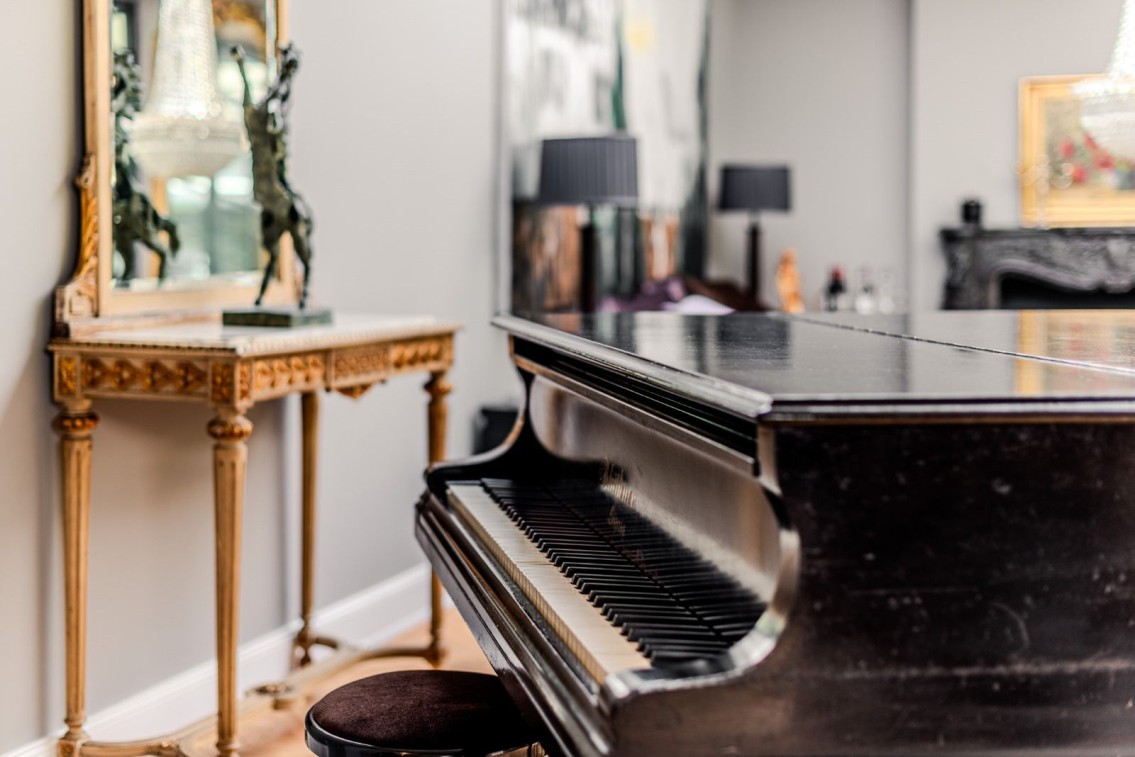 Ein stilvoller Kamin verleiht dem Wohnzimmer eine gemütliche, exklusive Atmosphäre, während hochwertige Möbel und wertvolle Kunstwerke, ergänzt durch ein elegantes Klavier, das Interieur zu einem wahren Highlight machen. Die hochwertigen Materialien und die durchdachte Raumaufteilung schaffen eine luxuriöse, aber gleichzeitig behagliche Wohnatmosphäre.