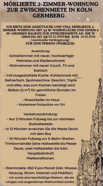 Köln wohnungsboerse.net übernimmt keine Gewähr für von Dritten gemachte Angaben