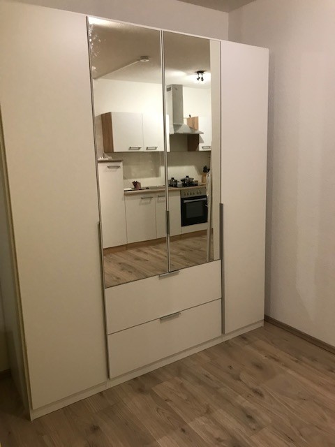 Eiche hell - Laminat, Duschbad mit Dusche, EBK mit Backofen, Wasserkocher, Toaster, Mikrowelle, Geschiirr alles incl. Schlafcouch, Kleiderschrank, TV, Rollläden, Jalousien usw. WLAN ist in der Nebenkostenpauschale incl.