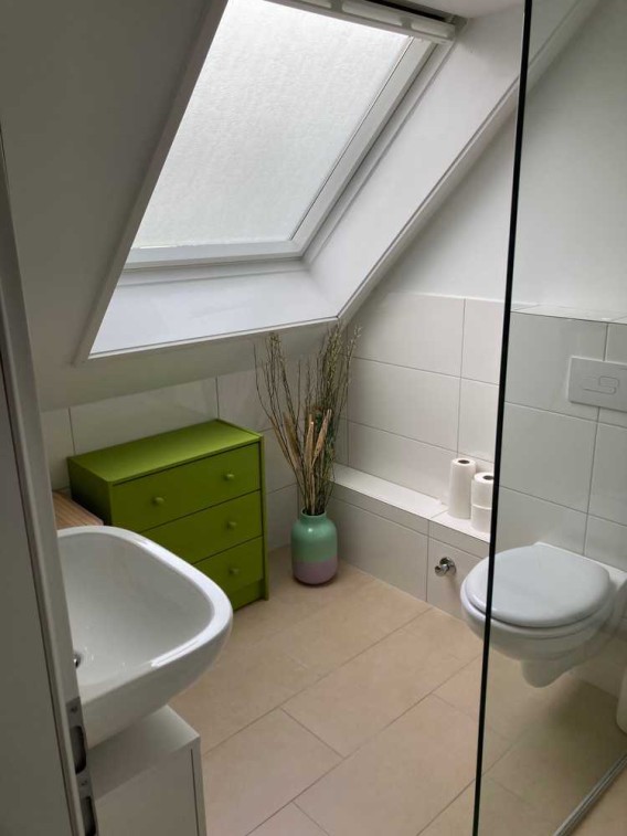 - Neues Badezimmer mit Dusche, WC und Waschbecken
