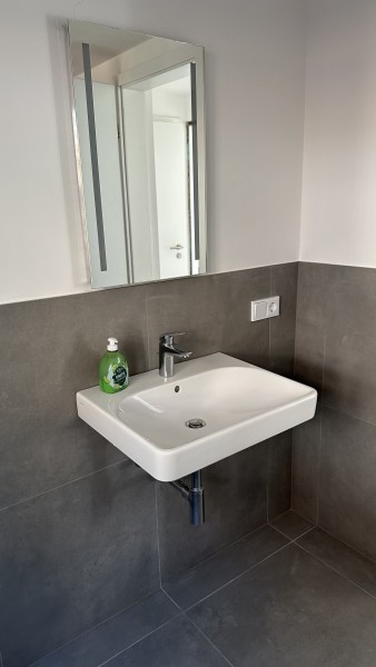*großformatige Fliesen sowie Unterputz Sanitärinstallationen