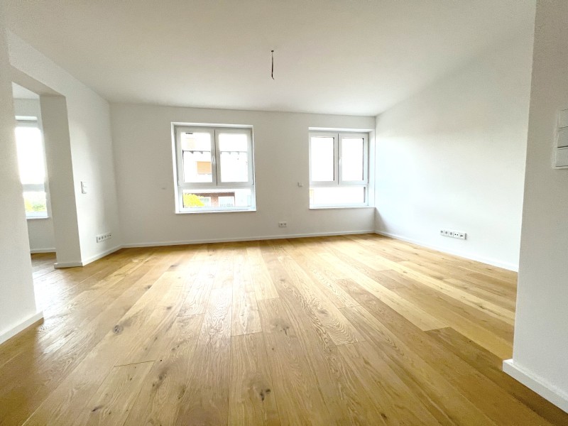 Diese helle, schön geschnittene neue Erdgeschosswohnung besticht durch eine offene Raumaufteilung, bei der sich die rund 94 m² Wohnfläche auf 1 Schlafzimmer, eine Ankleide, den integrierten Küchen-Wohn-Essbereich und das Badezimmer verteilen.