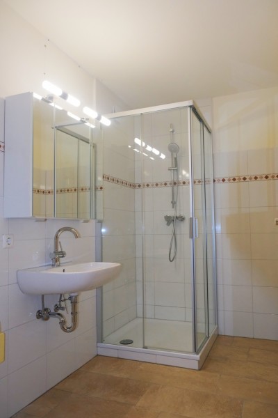 - Bad und WC mit schönen, zeitlosen Wand- und Bodenfliesen