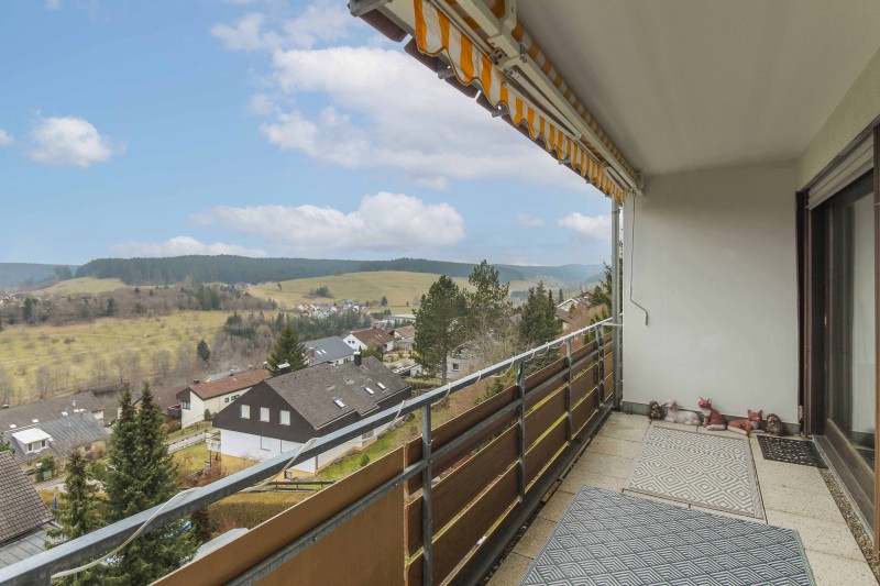 2 sonnige Balkone mit atemberaubender Aussicht auf den Schwarzwald und ein Schwimmbad inkl. Saunabereich (Sauna kostenpflichtig) im eigenen Haus.