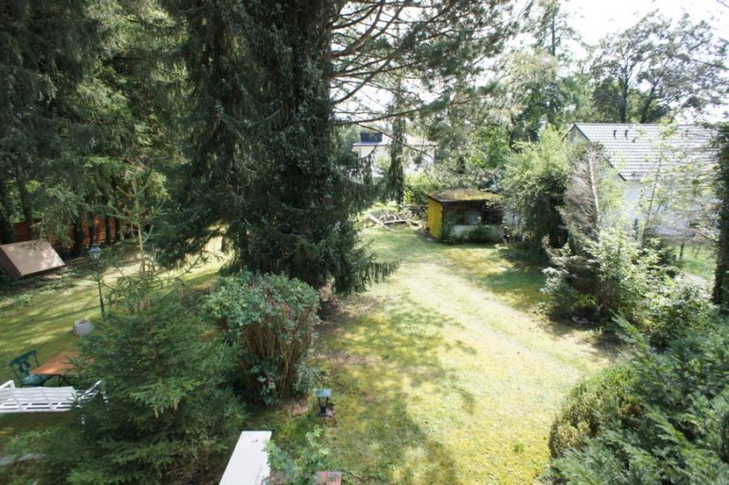 Die Wohnung verfügt über ein großes Fensterelement mit überdachtem Balkon mit einem 180 ° unverbauten Blick südlich in das große Gartengrundstück mit Baumbestand, welcher straßenabgewandt an der Rückseite des Grundstücks gelegen ist.