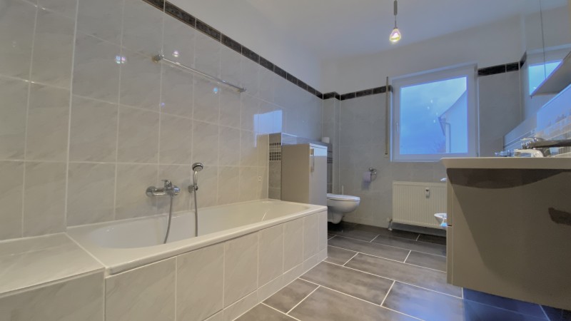 Die Wohnung besitzt ein großzügiges Badezimmer und ein separates Gäste-WC - beides mit Fenster. Badezimmer mit Dusche, Badewanne, Waschbecken und Bidet. Badezimmer ist mit Badmöbel ausgestattet.
