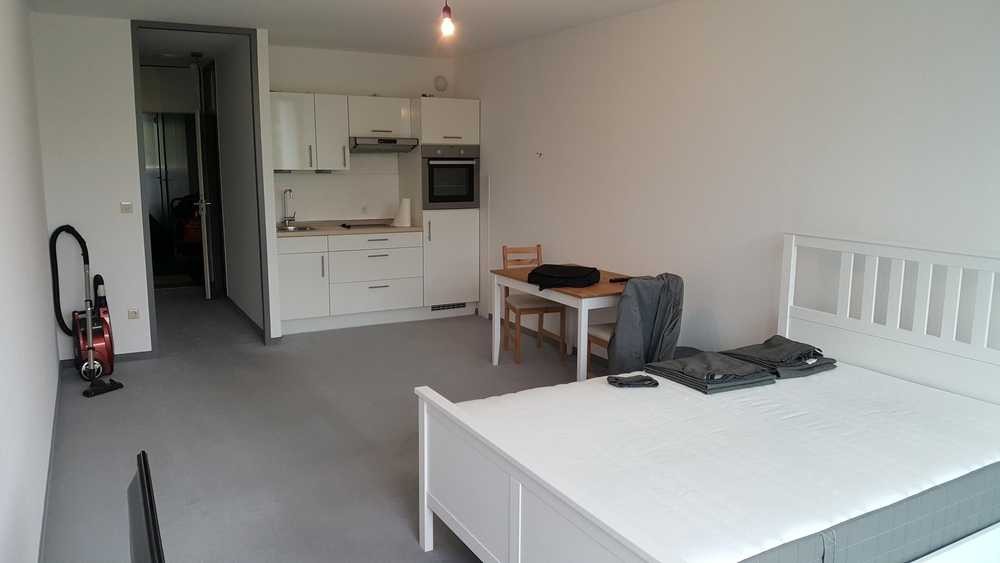 Freundliche, helle Einzimmerwohnung mit integrierter Küchenzeile, Badezimmer mit Dusche und großem Südbalkon. Wohnfläche 33 qm im 4. Stock eines Punkthochhauses mit Personenaufzug.