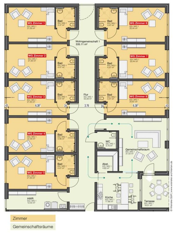 Im 2019 neu errichteten Caritas-Zentrum „An der Rosenau“ bieten wir in drei Senioren-Wohngemeinschaften Platz für jeweils 8 Bewohner*innen. Die privaten Zimmer unserer WGs können selbstverständlich mit eigenen Möbeln eingerichtet werden. Zu jedem WG-Zimmer gehört ein eigens Bad.