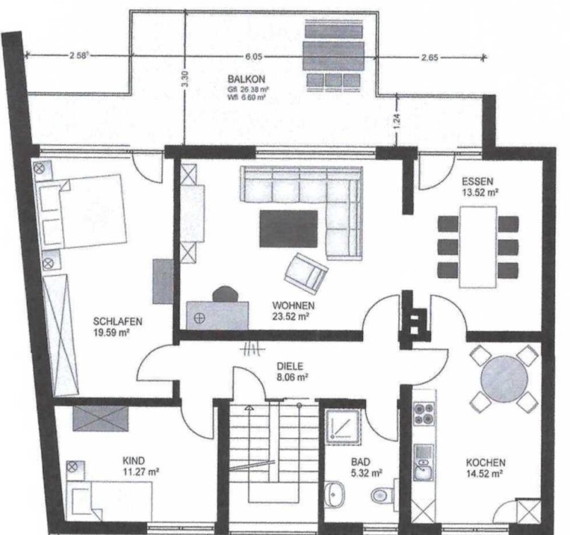 Wohnfläche: ca. 102 Quadratmeter (102,40 Quadratmeter)