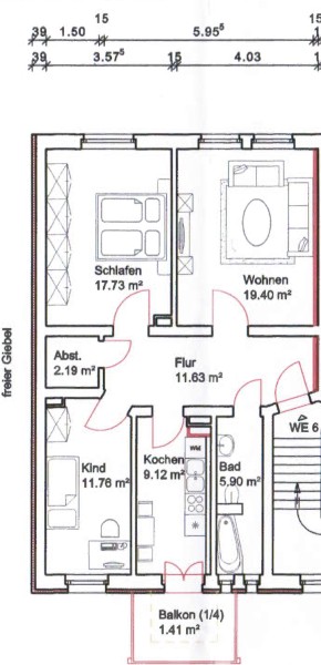 Ein besonderes Highlight ist der Balkon, der direkt von der Küche aus zugänglich ist – perfekt, um die frische Luft zu genießen. Das Badezimmer ist mit einer Badewanne ausgestattet, und ein praktischer Abstellraum bietet zusätzlichen Stauraum.
