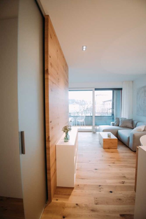 Das Gebäude mit vier Etagen verfügt über 29 möblierte Appartements mit ca. 57 m² bis ca. 68 m² und einer Gewerbeeinheit im Erdgeschoss. Die von Architekten designte Inneneinrichtung ermöglicht es, das Mobiliar den individuellen Bedürfnissen des Nutzers anzupassen.