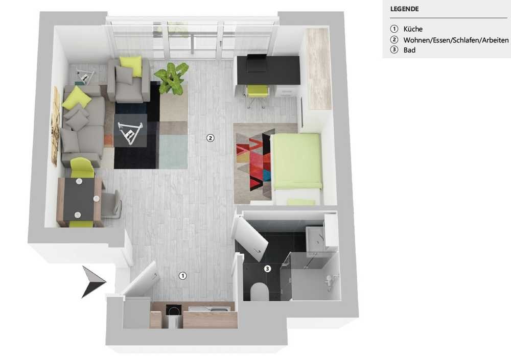 Wohnfläche ca: 32 m² nach Wohnflächen Verordnung