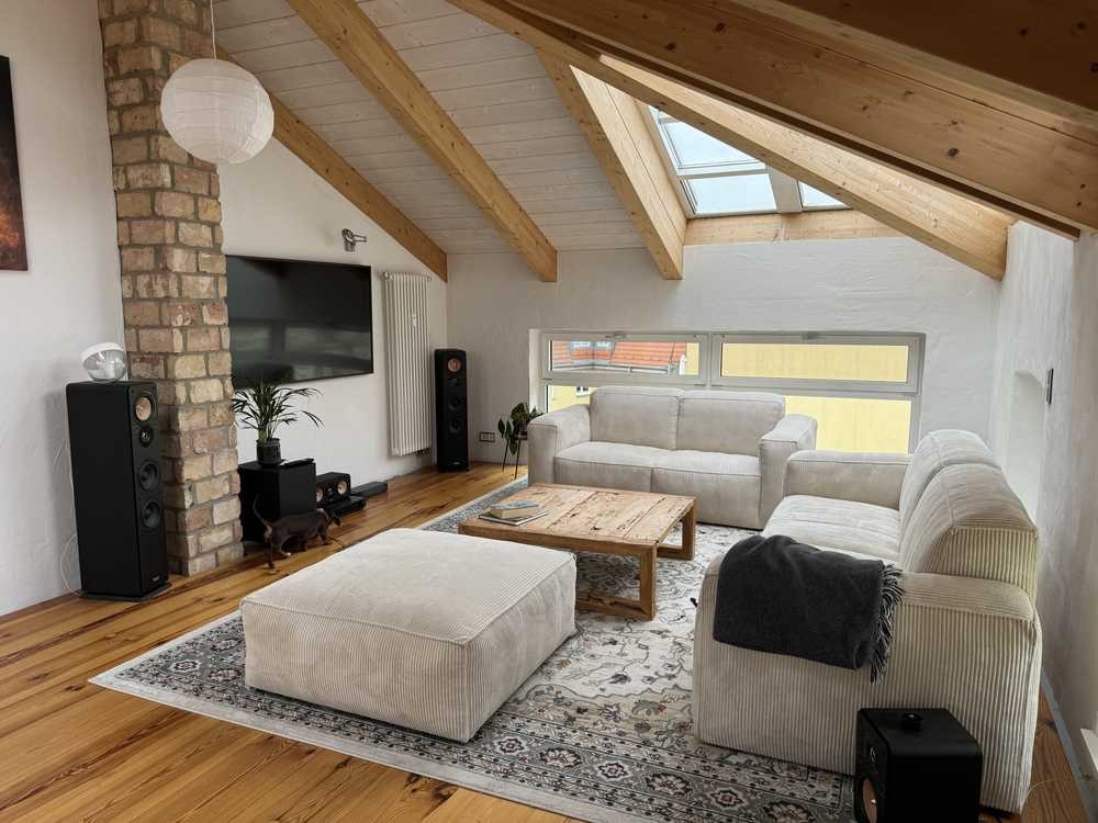 Ab dem 5.2.2025 können Sie in diese schöne Loft-Wohnung einziehen, die im 4. Stock liegt und durch eine gehobene Innenausstattung besticht. Das Apartment bietet neben zwei attraktiven Zimmern nicht nur zwei Badezimmer, sondern auch ein separates WC für Gäste. Eine Besonderheit ist, dass es nicht nur einen Balkon gibt, sondern Sie auch den Garten am Haus zu Ihrer Erholung nutzen können. Die Wohnung bietet mit der Einbauküche, einem eigenen Stellplatz für Ihr Auto und dem Stauraum im dazugehörigen Keller einiges an Komfort.