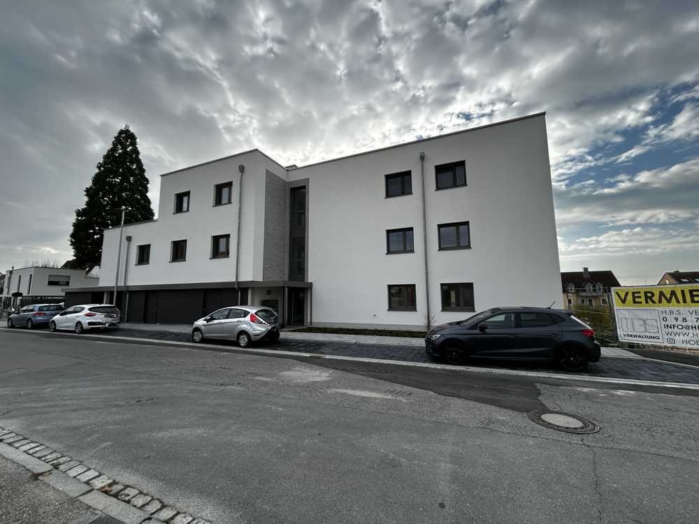 Bei diesem modernen Mehrfamilienhaus handelt es sich um einen Neubau.