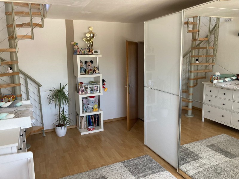 Sie bietet nicht nur eine ruhige Lage in einer Sackgasse und einen herrlichen Ausblick, sondern auch eine durchdachte Raumaufteilung und zahlreiche Annehmlichkeiten, die das Wohnen hier besonders angenehm machen: Sie befindet sich in einem ruhigen 7-Parteien-Haus, welches in den letzten Jahren modernisiert wurde und erstreckt sich über das 2. und 3. Obergeschoss, bietet viel Stauraum einschließlich eines Kellers, sowie Platz für die Trocken-Wäsche im Speicher. Öffentliche Parkplätze sind direkt vor dem Haus vorhanden.