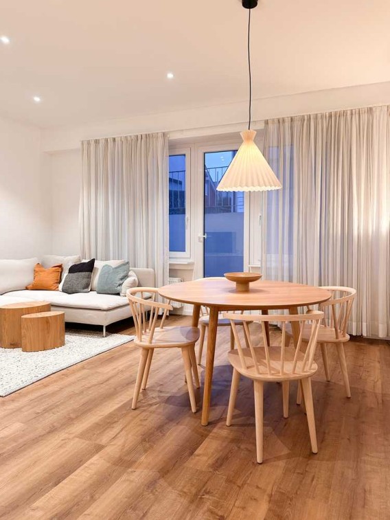 Die Wohnung ist voll möbliert und komplett ausgestattet (Geschirr, Küchengeräte, Töpfe, Staubsauger, neue Waschmaschine) man kann quasi mit dem Koffer einziehen. Wir vermieten nur inkl. Möblierung.