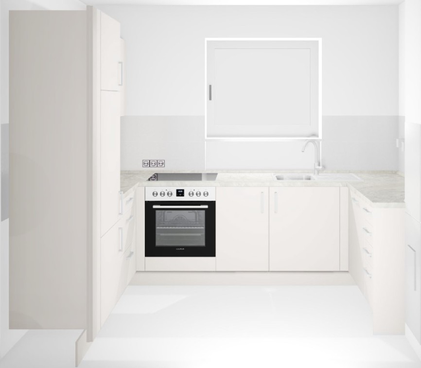 Da die neue Küche erst Ende Februar eingebaut wird, kann dazu aktuell nur die Planung gezeigt werden (s. Bilder) – Korpus-Farbe: Sand / Arbeitsplatten-Farbe: Limestone Nachbildung