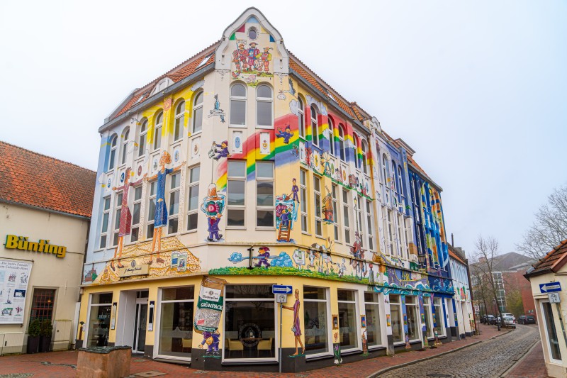 Dieses besondere Apartment befindet sich in dem bekannten Bunten Haus, dessen Fassade mit kunstvollen Darstellungen der Stadtgeschichte von Leer verziert ist. Mitten in der historischen Altstadt gelegen, sind gemütliche Restaurants, einladende Cafés und vielfältige Einkaufsmöglichkeiten nur wenige Schritte entfernt.