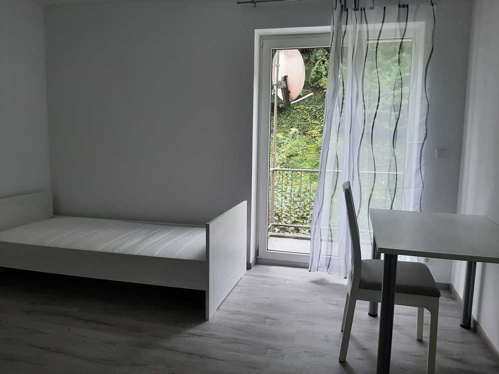 Das Appartment befindet sich im Erdgeschoss eines Mehrfamilienhaus. Das Appartment ist voll möbiliert, bestehend aus einem Flur mit Kleiderschrank, einer Küche mit Kühlschrank, Herd, Töpfe, Geschirr etc.. Die auf den Bildern dargestellte Waschmasdchine und der Trockner befinden sich nicht in der Wohnung und sind nicht nutzbar. Das Bad verfügt über Dusche und WC. Ein Abstellraum im Keller, ein Fahrradraum und ein Auto-Stellplatz zusätzlich € 60,00.