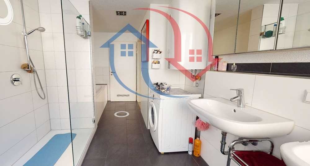 Die helle Wohnung im ersten OG des Objekts ist mit 145m² großzügig geschnitten. Ein langer, offener Flur bietet einen optimalen Zugang zu den einzelnen Räumen. Das Schlafzimmer ist mit einem großen Fenster hell und offen gestaltet. Gegenüber des Schlafzimmers befindet sich ein modernes Tageslichtbad mit Badewanne, Dusche, WC, Doppelhandwaschbecken und Waschmaschine. Direkt neben dem Badezimmer ist noch ein separates Gäste-WC.