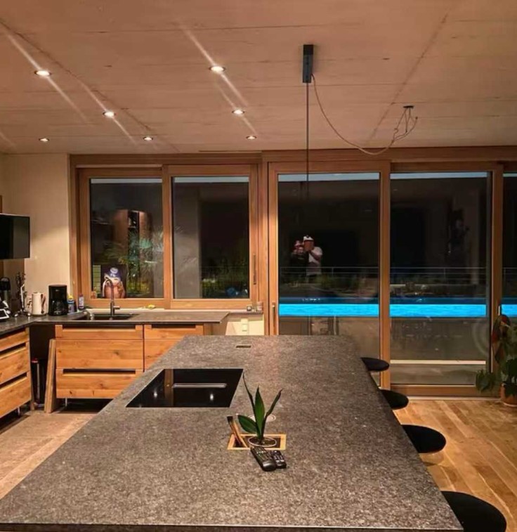 Beheizt wird das Objekt mit einer Luft-Wärmepumpe über Fußbodenheizung.