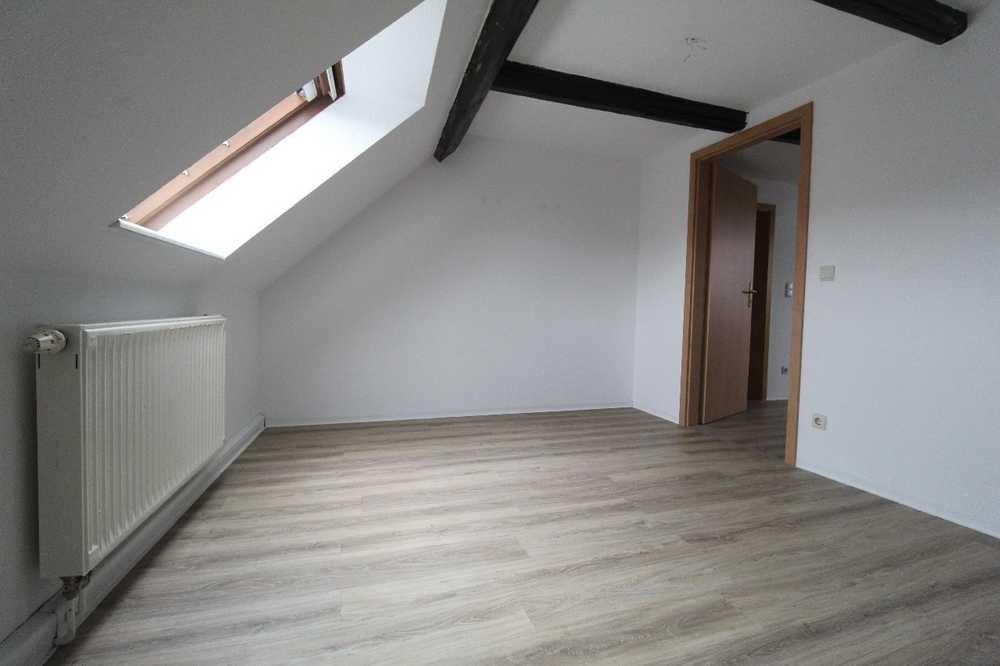 Diese helle Dachgeschosswohnung befindet sich in einem denkmalgeschützten Mehrfamilienhaus im Zentrum von Penig. Neben einer zweckmäßigen Küche verfügt sie über ein gefliestes Tageslichtbad mit Wanne. Im Bad befindet sich auch der Anschluss für die Waschmaschine. Vom Wohnzimmer aus gelangt man in das geräumige vormalige Kinderzimmer. Ebenso erreicht man über die innenliegende Holztreppe die obere Ebene, die mit Dachflächenfenstern aufwarten kann. Im Wohn- und Kinderzimmer befinden sich jeweils Sichtbalken, welche die Räume gemütlicher machen. Die Wohnung verfügt über eine Gegensprechanlage und eine eigene Etagenheizung. Der Mieter zahlt die Heizkosten je nach Verbrauch direkt an den Anbieter.
