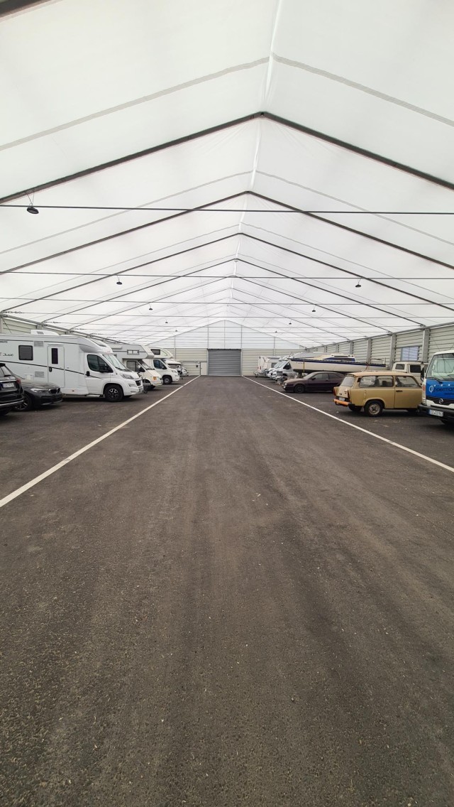 Wie auf den Bildern zu sehen befinden sich in der Halle mehrere Stellplätze.