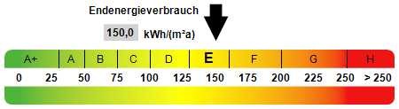 | Endenergiebedarf: | 150,00 kWh/(m²*a) |