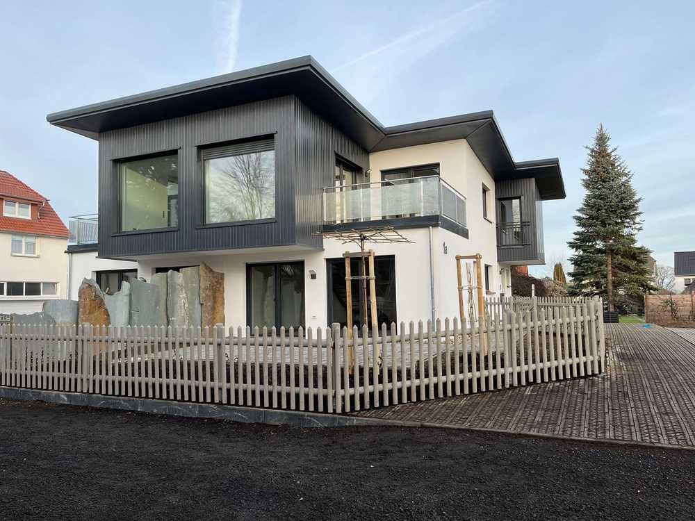 Die Fotos zeigen eine vergleichbare Doppelhaushälfte, die vor kurzem fertiggestellt wurde. Der Grundriss weicht von den Bildern ab, siehe Grundrisse. Der Balkon im 1. OG entfällt. Dadurch erhöht sich die Wohnfläche und das Zimmer ist doppelt so groß wie in den dargestellten Bildern. Zudem sind in diesem Zimmer zwei LAN-Anschlüsse für flexibles Arbeiten im Homeoffice installiert.