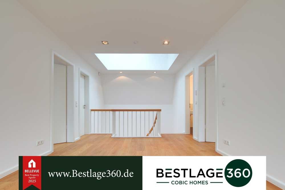 Das lichtdurchflutete Erdgeschoss begeistert mit raumhohen Fenstern, einem offenen Wohn-, Ess- und Kochbereich sowie stilvollen Einbauschränken. Die hochwertige Einbauküche erfüllt alle Ansprüche an modernes Wohnen. Im Obergeschoss erwarten Sie bis zu zwei Schlafzimmer, darunter ein großzügiges Elternschlafzimmer mit eigenem Bad (Dusche). Ein weiteres Badezimmer mit Wanne und Dusche sowie ein separates Gäste-WC sorgen für zusätzlichen Komfort.
