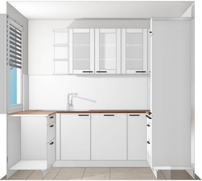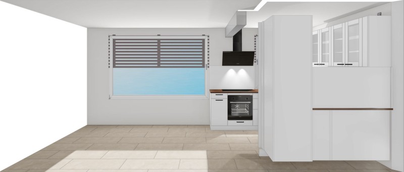 Offene Wohnküche mit Verbindungstür zum Wohnzimmer