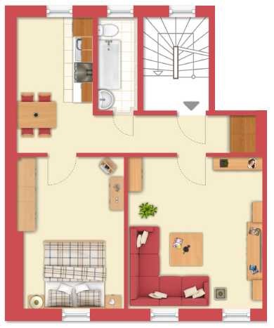 Diese charmante 2-Zimmer-Wohnung bietet auf ca. 62 m² ein komfortables Zuhause. Die Räume sind geschickt aufgeteilt und ideal für Singles und Paare geeignet. Das großzügige Wohnzimmer lädt mit viel Tageslicht zum Entspannen ein. Es bietet genügend Platz für eine gemütliche Sitzgruppe und einen Essbereich. Ein ruhiges Schlafzimmer mit ausreichend Platz für ein Doppelbett und Stauraum.