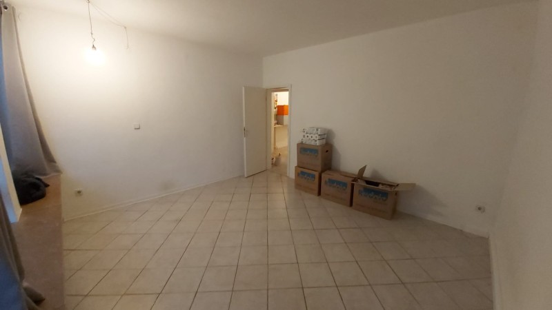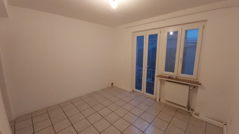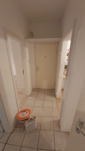 Innenhofseite, Zugang zum Balkon (geschützt durch Taubennetz). Fliesenboden.