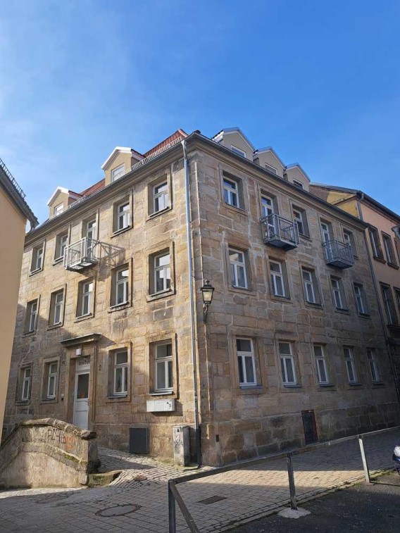 Die Wohnung befindet sich im historischen Stadtkern von Bayreuth. Die Maisonettewohnung hat schöne offene Sichtbalken, die eine wohnliche Atmosphäre schaffen.