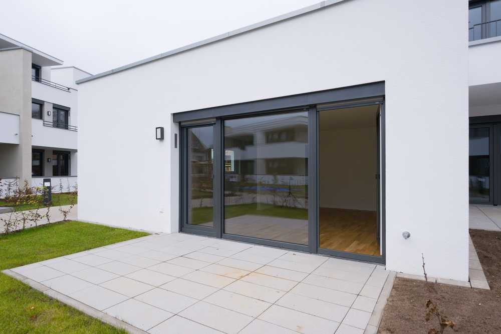 Heller freundlicher Bungalow mit separatem Eigang, allein genutzer Terrasse mit Gartenteil in modernem Wohnquartier.