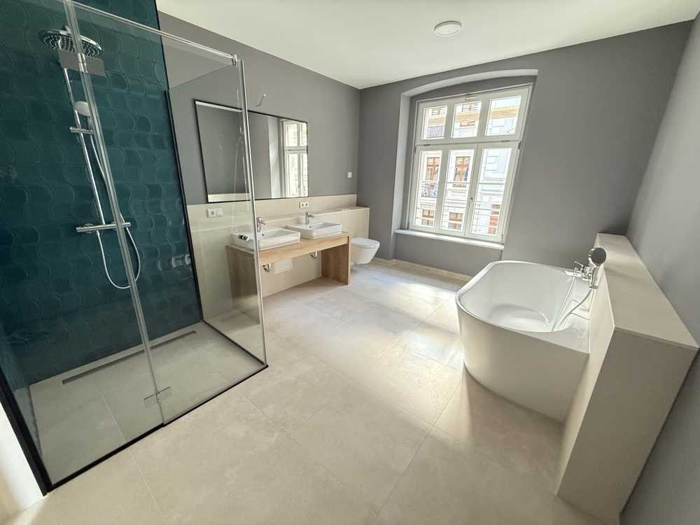 ERSTBEZUG! Hochwertige 4-Raumwohnung im 1. Obergeschoss, mit 2 Bädern, großem Balkon & Stellplatz!