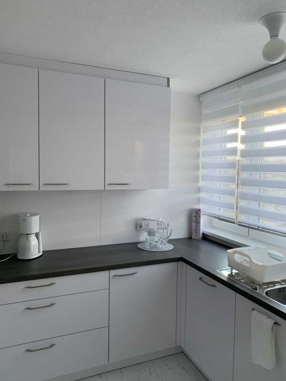 Wohnzimmer, Esszimmer, Küche, Bad, Gäste-WC, Kellerräume und Garten. Komplett mit modernen weissen Möbeln, und Bettwaren neu ausgestattet..