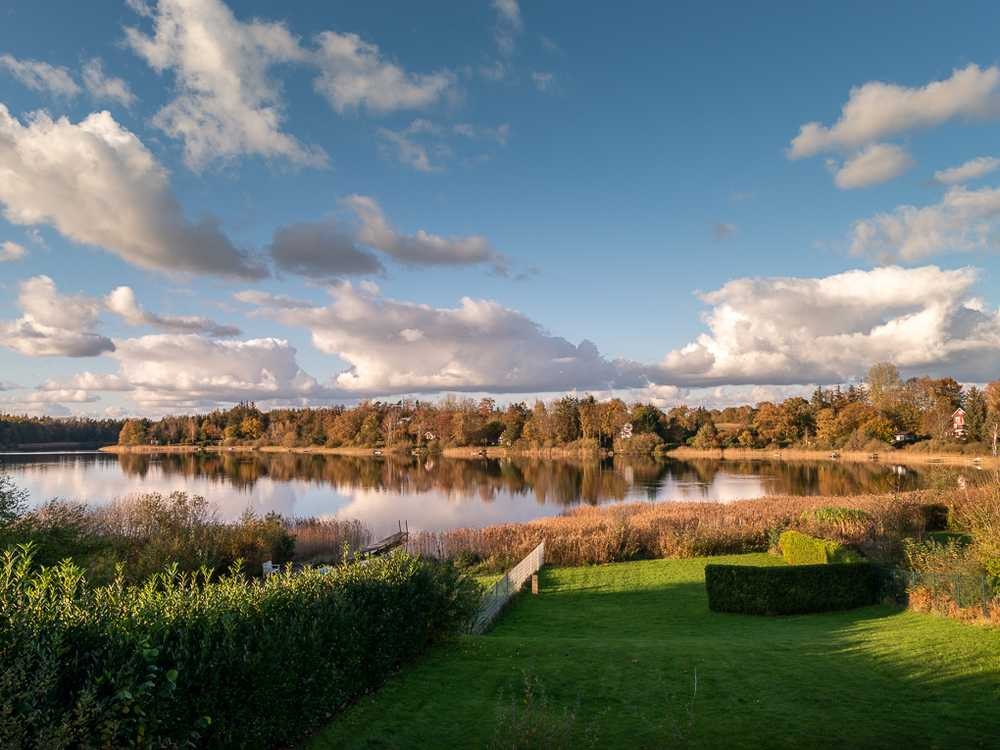 Die weite Rasenfläche, über die Sie direkt an den See mit eigenem Steg gelangen, können Sie zum Entspannen nutzen. Hier erwartet Sie auch noch eine versteckte Terrasse, wo Sie in den Abendstunden den Sonnenuntergang auf dem See genießen können – ein wahres Idyll!