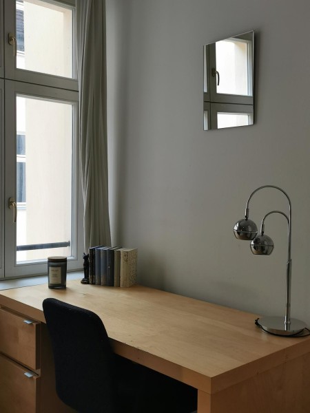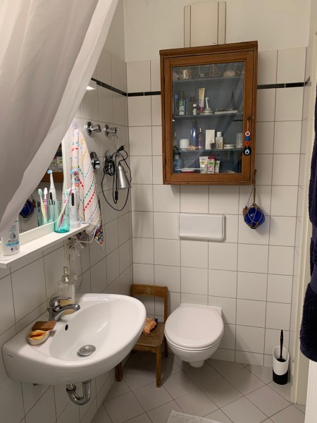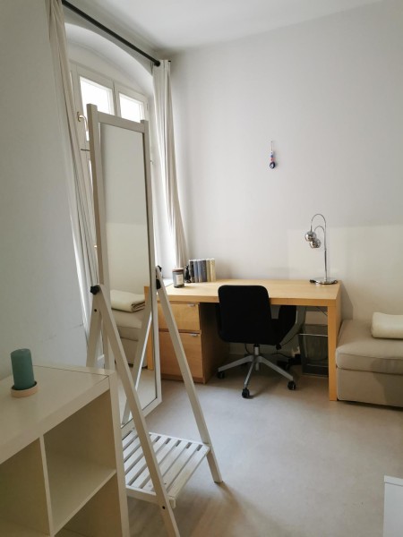 Die Küche wird aktuell sogar neu eingerichtet und gestrichen. Das Wohnzimmer (auf dem Foto ist es noch ein Studentenzimmer) wird aktuell ebenfalls neu möbeliert und ist Ende April, Anfang Mai neu.
