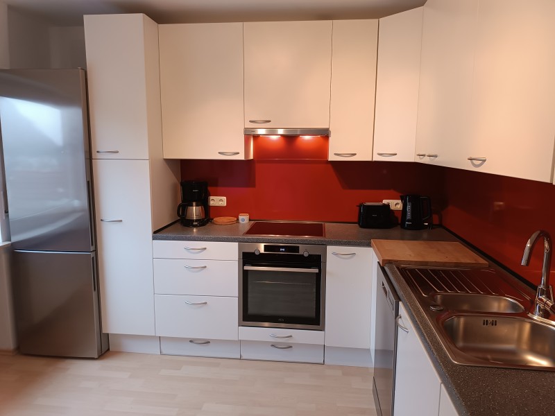 Die Wohnungen sind mit voll ausgestatteten Einbauküchen versehen, die hochwertige Geräte sowie Geschirrspüler umfassen. In den Schlafzimmern findest Du drei komfortable Einzelbetten, die auf Wunsch zusammengestellt werden können. Im Wohnzimmer hast Du die Möglichkeit, auf einem gemütlichen Schlaf-Sofa zu entspannen. Hier gibt es auch ein komfortables Schrankbett.