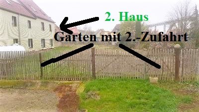 Die rückwärtige Wildwiese hat eine 2. Einfahrt.