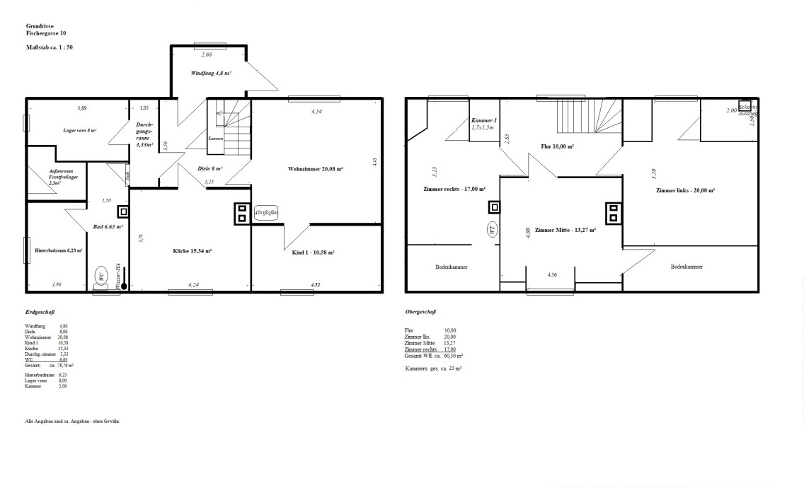 EG - ca. 79 m² (RH 2,2-2,4m) - 2 Zimmer (20+11m²), 5 m² Windfang, 8 m² Diele, 15 m² Küche, 15 m² Keller