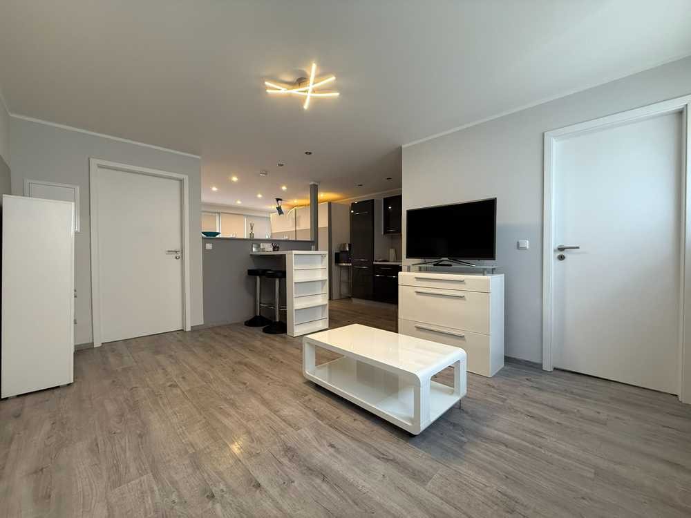 Das Wohnhaus befindet sich in einer ruhigen Sackgasse direkt am Wald. Das gemütliche Apartment im Erdgeschoss besteht aus einem großen Raum, dem Badezimmer und einer separaten Abstellkammer. Es ist fast vollständig möbliert. Der großzügige Raum ist durch eine halbhohe Mauer in Wohn-/Küchenbereich und Schlafbereich unterteilt. Die gesamte Wohnung verfügt über Einbaustrahler oder Deckenleuchten. Der Wohnbereich beinhaltet eine Klein-Küche mit allen notwendigen Elektrogeräten, eine Esstheke mit 2 Hockern, 2 Kommoden, eine Couch mit Couchtisch und ein Fernsehgerät. Im Schlafbereich befindet sich ein großer Kleiderschrank. Sie müssen nur noch mit Ihrem eigenen Bett einziehen. Das funktionale und dennoch ansprechende Bad ist mit einer Dusche ausgestattet. Das gesamte Apartment ist modern und hell eingerichtet.