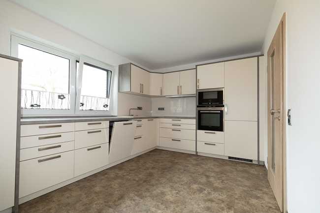 Die Wohnküche ist mit einer hochwertigen Einbauküche ausgestattet und bietet zudem die Möglichkeit für einen Essbereich.